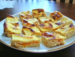 Osnovno zmes premešamo z ročnim mešalcem in jo prelijemo v pomaščen in nekoliko pomokan pekač (ca. 26 cm). Pečemo pri 200 stopinjah približno 10 minut. Med peko gladko zmešamo jajce in kislo smetano in jo po 10 minutah zlijemo po pecivu. Pečemo še 35 minut pri 190 stopinjah.