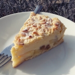 Testo, jabolka in rozine prelijemo z vročim pudingom.