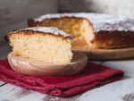 Čez testo posujte nadev in čezenj preljite drugo polovico mase. Čez tako pripravljeno pecivo posujte še sladkorni posip.