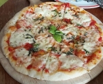 Disk testa prenesemo na z moko posut perforiran okrogel pekač za pizzo, ga rahlo premažemo z oljem, nanesemo paradižnikovo omako...in nadevamo po želji.