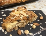Dobljeno rolado prerežemo na pol po dolžini ter jo na pladnju prepletemo ter oblikujemo v krog. Posujemo z mandljevimi lističi in na pekaču vzhajamo še pol ure, nato pa pečemo 40 minut na 180°C.