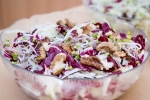 pol glave rdečega radiča 1 črna redkev manjša konzerva fižola 400 g 300 g kislega zelja kalčki olivno olje sok polovice limone ščepec soli 10 orehovih jedrc