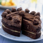 Po želji lahko torto okrasimo s pralinami ali orehovimi kroglicami, ki jih premažemo s čokoladnim oblivom.