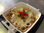 Naložimo jih v nepregorno posodo, jih obložimo s čebulo in slanino ter pokrijemo z rezinami sira. Postavimo v pečico in pečemo slabih 15 minut.