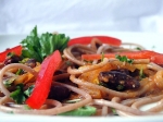 Špagete skuhamo. Medtem v kozici na šibkem ognju pogrejemo omako in jo zmešamo z odcejenimi špageti.