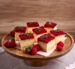 Pred serviranjem odstranimo obod pekača in pecivo narežemo na kocke.