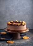 Pustite, da se ohladi pri sobni temperaturi. Na biskvit položite pomarančni nadev, premažite s čokoladnim prelivom, in če želite, torto lahko okrasite s pomarančno lupinico. Marelično marmelado malo segrejte, jo premažite po vrhu in nanjo postavite pomarančno lupino. Torto lahko postrežete takoj ali po 24 urah.