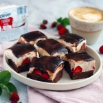500 g kremnega sira 200 ml smetane za stepeno smetano 33 % 100 g sladkorja v prahu Sadna marmelada, npr. jagodna ali češnjeva 300-400 g svežih jagod 100 g mlečne čokolade 3-4 žlice mleka