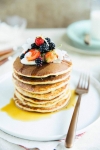 Palačinke razdelimo na krožnike in postrežemo s sezonskim sadjem, kokosovimi lističi, jogurtom, javorjevim sirupom (ali medom) (izpustite v kolikor se izogibate sladkorju) ali pa se poigramo z okusi in naredimo svojo kombinacijo nadeva.