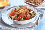 Pustimo stati vsaj pol ure, potem solato okrasimo z listi bazilike in postrežemo.