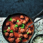 V ponev dodamo mesne kroglice skupaj s sokovi, ki so iztekli med počivanjem, in jih nežno kuhamo 15 minut, medtem jih enkrat obrnemo. Kari solimo, popramo, dodamo limonov sok in lističe koriandra, nato ga postrežemo z rižem.