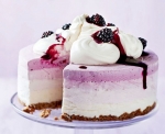 V preostalo jogurtovo mešanico z metlico vmešamo 3 žlice robidovega pireja, da nastane bledo rožnata masa. Eno tretjino je nalijemo na jabolčno plast in postavimo v zamrzovalnik, da se strdi. Ponovimo še dvakrat, pri čemer v jogurtovo mešanico vsakič dodamo toliko robidnic, da je naslednja plast malce temneje obarvana kot prejšnja. Zamrznemo čez noč ali za toliko časa, da se vse plasti popolnoma strdijo. Torto lahko pripravimo do 1 mesec vnaprej in dobro zavito hranimo v zamrzovalniku. V tem primeru zamrznemo tudi preostali robidov pire.