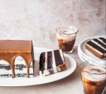 165 g moke 50 g kakava v prahu 3⁄4 žličke pecilnega praška 1 1⁄4 žličke sode bikarbone 200 g svetlo rjavega sladkorja muskovado 80 g ohlajenega stopljenega masla 1,5 dl kisle smetane 1,35 dl vroče močne črne kave 2 velika beljaka