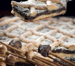 Dve tretjini testa razvaljamo na pomokani delovni površini v pravokotnik in ga položimo na pekač, ki smo ga namazali z maslom. Iz preostalega testa naredimo tanke svaljke. Na testo namažemo makovo maso, iz testenih svaljkov pa naredimo mrežo.