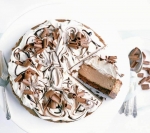 Pečico nato segrejemo na 240 °C. Čokolado previdno raztopimo. Z električnim mešalnikom zmešamo sir in sladkor, da dobimo gladko in kremno mešanico. Primešamo še presejani kakav, aromo, kavni liker, jajca, kislo smetano in polovico stopljene čokolade. Preostalo čokolado zmešamo s toliko mleka, da dobimo omako. Shranimo jo za okrasitev.