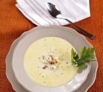 5 dl vode 5 poprovih zrn 5 nageljnovih žbic nekaj žafranovih nitk 2 lističa žajblja malo luštreka, ingverja, bazilike, pehtrana in timijana za povezavo juhe 1,25 dl kisle smetane 2 rumenjaka 1 žlica moke