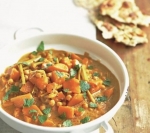 Dodamo bučne kocke, jih dobro premešamo s preostalimi sestavinami in dolijemo še jušno osnovo ter kokosovo mleko. Vse skupaj nekaj časa kuhljamo, nato dodamo čičerko in kuhamo še 10 minut, da se buča zmehča. Če želimo, lahko zdaj kari tudi ohladimo in ga zamrznemo.
