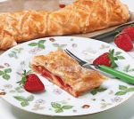 Tretjino testa vzdolžno premažemo s skutnim nadevom in obložimo z jagodami. Testo preganemo čez nadev, zvijemo v zavitek in položimo na pekač, ki smo ga obložili s papirjem za peko. Zavitek premažemo s stepenim jajcem. Na površini zavitka naredimo mrežo iz ostankov testa; mrežo prav tako premažemo z jajcem. Zavitek pečemo v prej ogreti pečici približno 40 minut do lepe zlato rjave barve. Šele ko se zavitek v pekaču ohladi, ga razrežemo na primerne kose.