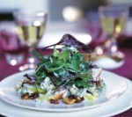 Solata s hruško, datlji in orehi ter prelivom iz sira z modro plesnijo