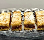 Ohlajeno pecivo posujemo s sladkorjem v prahu, narežemo na kose in postrežemo.