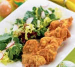 Očiščeno in oprano solato serviramo na krožnike in pokapamo z marinado, ki smo jo zamešali iz navedenih sestavin. K solati priložimo ocvrte telečje ptičke in ponudimo.