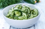V veliko skledo položite tanko narezane kumare in čebulo.