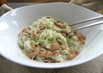 Dodamo mu dodamo kuhan fižol in začinimo z oljem, soljo, kisom, poprom in po potrebi zalijemo z malce vode. Dobro premešamo in postrežemo.