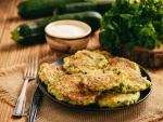 Iz bučk odtisnemo odvečno tekočino. Naribane bučke položimo med dve kuhinjski brisači in pritiskamo z dlanmi. Nam pa se zdi, da bi tako porabili preveč papirja (bučk je vendarle kar nekaj), zato se odtiskanja lotite kot občajno: bučke rahlo nasolite, malce počakajte, nato pa jih odtisnite še z dlanmi.