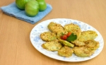 Vsak kolut paradižnika povaljamo najprej v mešanici moke, nato v mešanici jajc in pinjenca ter ponovno v moki, da dobi dvojno skorjico.