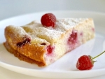 skuta 400 g, jogurt 100 g, 2 jajci, sol, sladilo 4 žlice ovsenih kosmičev, 1 čajna žlička pecilnega praška, 100 g malin (breskev, sliva, hruška, banana).