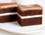 Ohlajen biskvit prerežite na dva enaka dela.