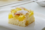 Po poravnanem biskvitu razporedite nektarine, narezane na majhne kocke.