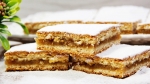 Ko je pita pečena, jo narežite na kocke in potresite s sladkorjem v prahu