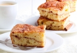 V namaščen pekač dodamo polovico mase in jo z lopatko razporedimo po celotni površini ter po vrhu pogladimo. Po masi potrosimo polovico cimetovega posipa. V pekač dodamo preostanek mase (najbolje je, da jo dodajamo kar s pomočjo žlice v kupčkih) in jo z lopatko ponovno čim bolj enakomerno razmažemo po celotni površini ter povrhu lepo pogladimo. Po masi potrosimo preostanek cimetovega posipa.