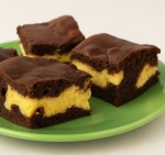 Najprej vanj zlijete tri četrtine biskvitne mase, nato dodajte še skutino maso in po vrhu še preostanek biskvitne mase.