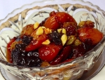 Potem namočeno sadje odcedimo in ga v skledi zmešamo z oreški, dodamo še kardamom, cimet, sirup in rožno vodo. Premešamo in mešanico znova damo v hladilnik za uro ali dve.