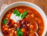 Ko je fižol kuhan, po okusu dodajte sol in poper. Enolončnico servirajte v globoke krožnike, po vrhu dodajte žlico kisle smetane ter potresite s svežim peteršiljem ali kančkom čilija za piko na i.