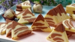 Izmenično vlivajte majhne porcije mešanice temne in svetle čokolade. Zaprite stranice in ustvarite trikotno obliko.