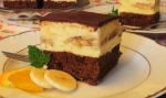 Nato čez biskvit premažemo polovico kreme, na njo položimo banane in premažemo še z drugo polovico kreme.