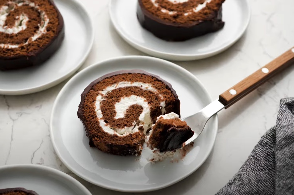 Rolado postavite v hladilnik za 30–60 minut, da se ganache strdi. Razrežite na rezine in postrezite. Ostanke hranite v hladilniku do 3 dni.