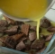 Preko njih polijemo pomarančno zmes in damo v hladilnik. V lonec damo kakav, sladkor, agar agar in mleko. Dobro premešamo in kuhamo 5 minut. Ko je zmes gotova, jo prelijemo čez prvo plast in postavimo nazaj v hladilnik, dokler se ne strdi.