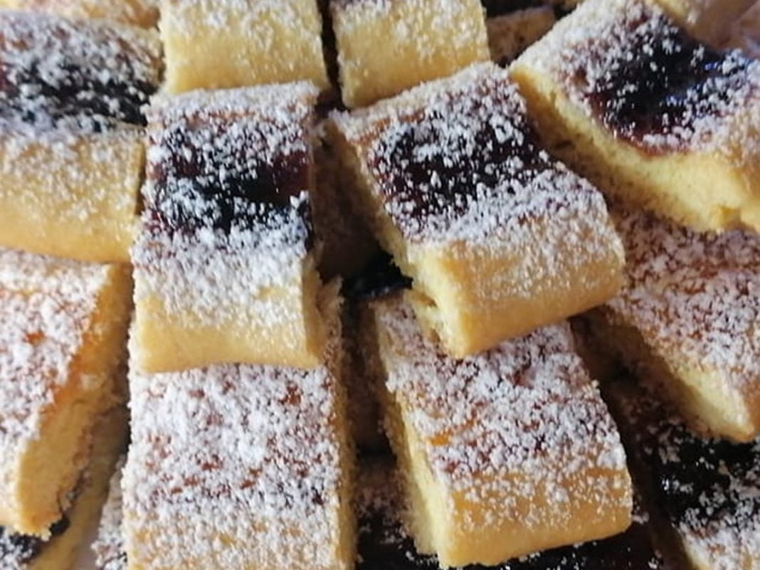 Iz zgoraj naštetih sestavin zamesimo testo, uporabimo vse sestavine razen sladkorja v prahu in marmelade.
