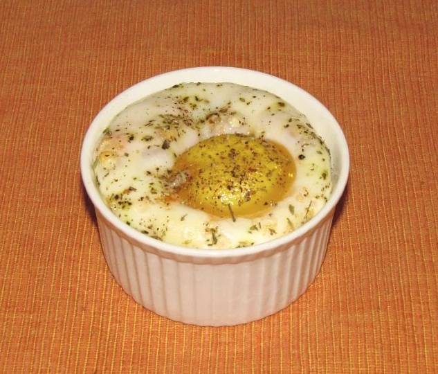 KUHINJA.COM | Jajce na oko v ramekinu, s šunko, sirom in zelišči ...
