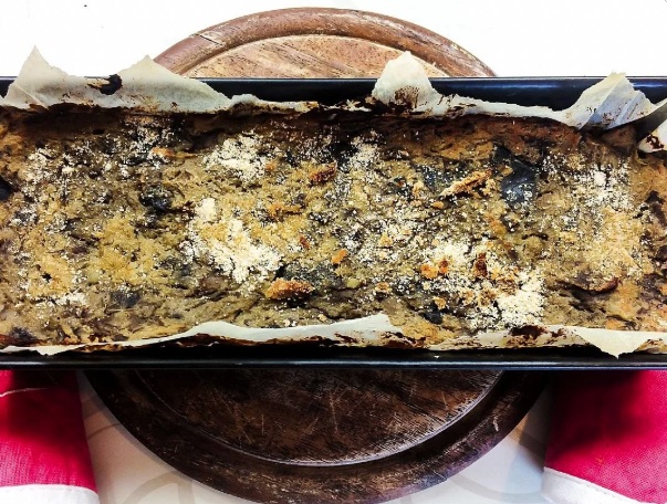 Vzamemo peki papir ter visok pekač za kruh, na papir posujemo nekaj drobtinic ter pretresemo zmes z melancani. Ponovno posujemo z drobtinicami ter pokapamo z olivnim oljem. Pečemo v pečici 30 minut na 180 stopinj. Ko je pečeno, je bolje počakati vsaj 30 minut, da se malo shladi, nato vzamemo iz pekača.