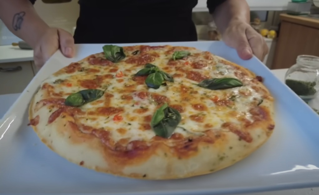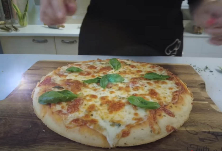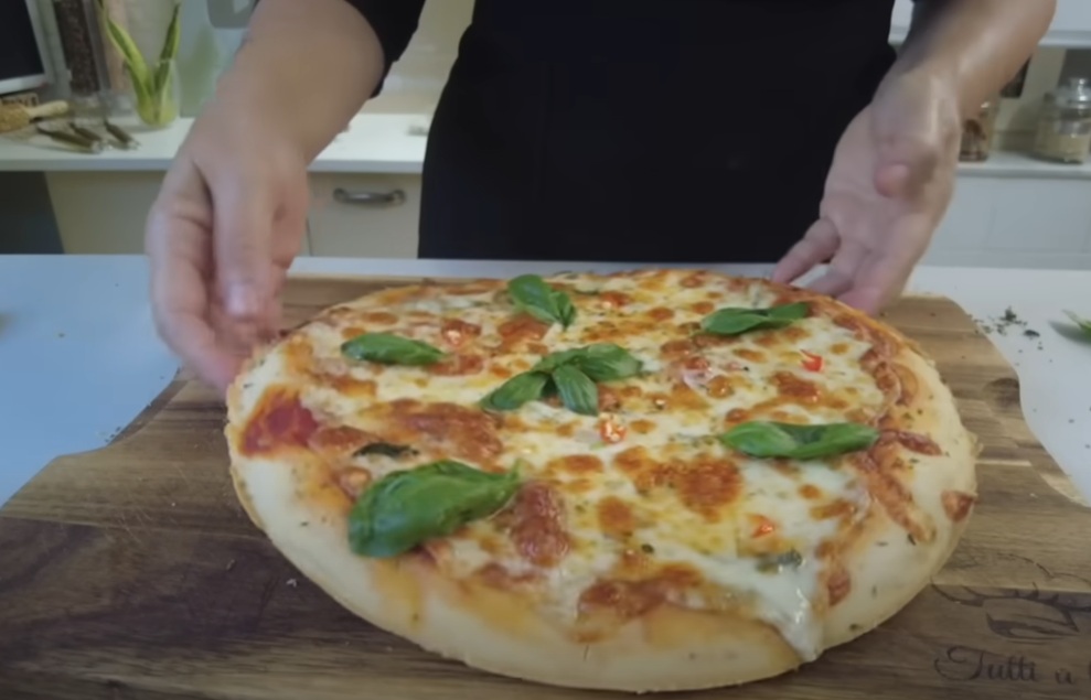 V približno petih minutah pripravljeno testo ima rahlo tekočo teksturo. To pa naj vas ne zmoti, saj mora biti prav takšno. Peči ga je namreč treba dvakrat – najprej s paradižnikovo omako, potem pa še z ostalimi dodatki.