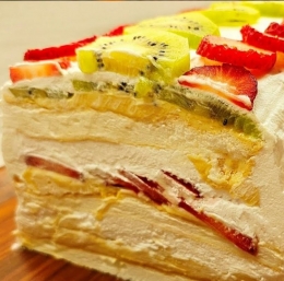 10 jajc banane kivi jagode jabolčni kis 4 žlice sladkorja 4 žlice moke 600 ml mleka 3 vanilijev sladkor 250 g margarine 500 ml smetane za stepanje