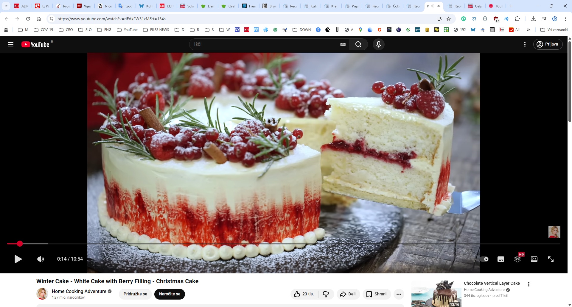 Ko se popolnoma ohladi, ga pečemo na 180 stopinjah približno 15 minut. Vzamemo ga iz pečice in pustimo, da se popolnoma ohladi.
