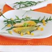 Sardele v parmezanovi skorjici z omako iz svežega paradižnika