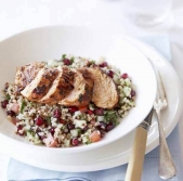 Pikantni puranji fileji in bulgurjeva solata z granatnim jabolkom