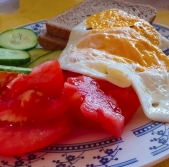 Jajčna omleta s češnjevimi paradižniki